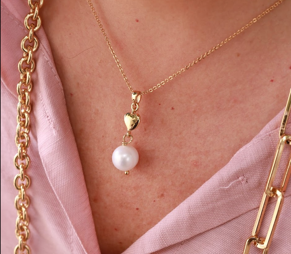 - Materiales:perla natural y cadena chapa de oro de 24k