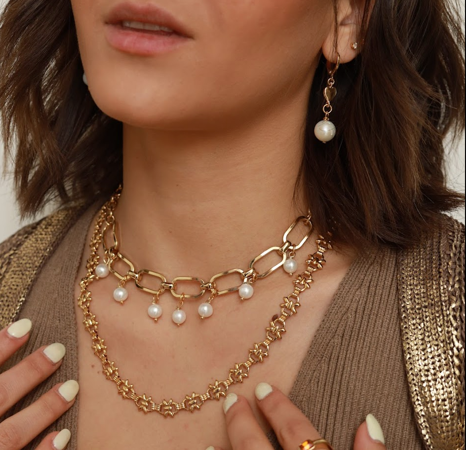 - Materiales:Perlas naturales, chapa de oro de 24k